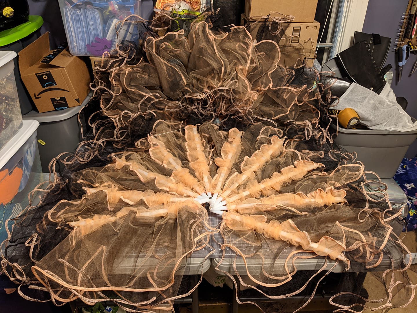 Peach/Black Tulle with Contrast Stitching
